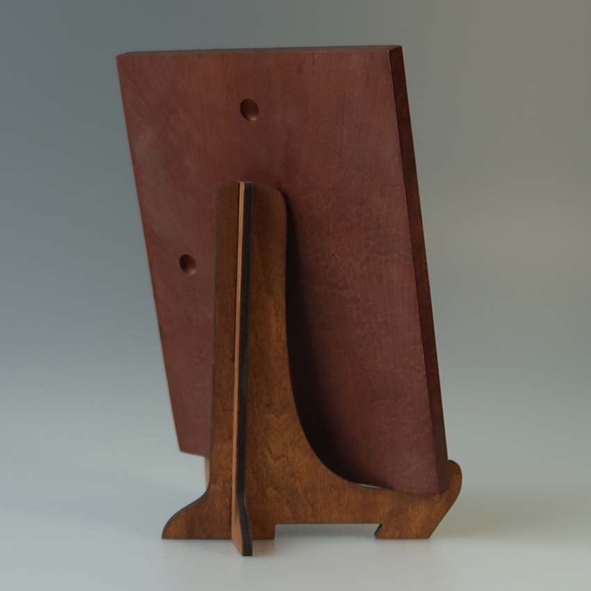 Основа — вишукана дерев’яна підкладка з ясеню, покрита глибоким відтінком махоню, який підкреслює природну фактуру дерева.