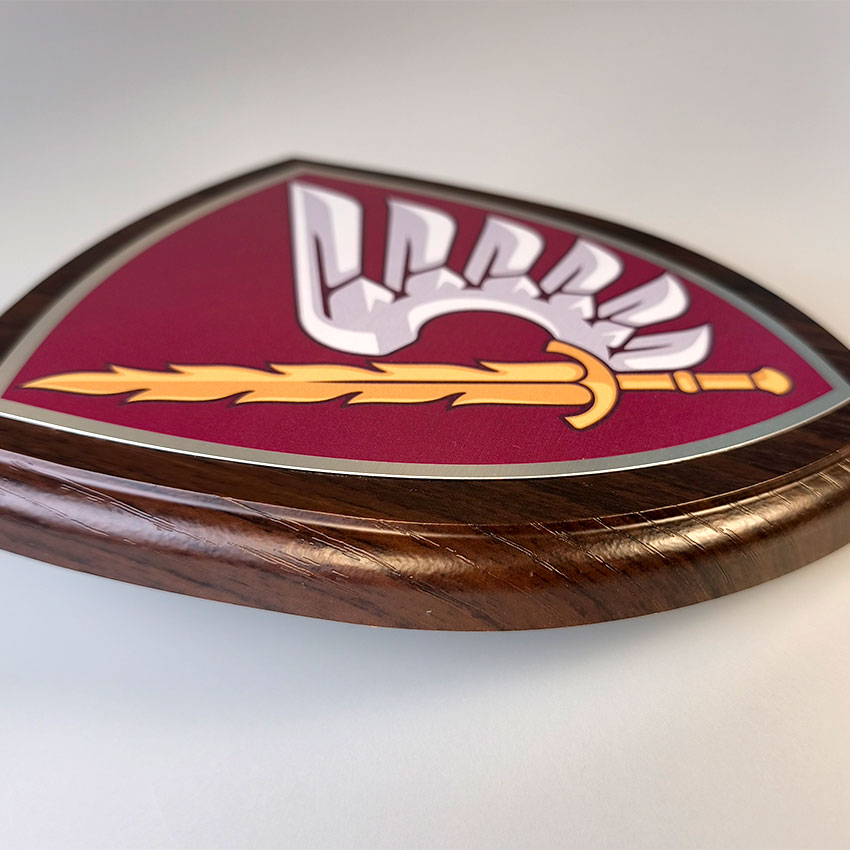 Друк: Зображення емблеми вашої бригади наноситься методом ультрафіолетового друку на металеву пластину. Така технологія забезпечує яскравість кольорів, високу деталізацію та стійкість до зношення.